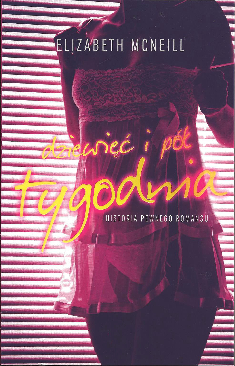 Bohaterka Dziewięciu i pół tygodnia Elizabeth McNeill jest młodą, wykształconą, niezależna kobietą, mieszkanką nowego Jorku. Nie podejrzewa nawet, że przypadkowe spotkanie na targu staroci całkowicie odmieni jej życie. Mężczyzna, którego imienia nigdy nie poznamy, wprowadza ją w świat perwersyjnego seksu, dominacji i uległości, zabiera w podróż, z której, zdaje się, nie ma powrotu. Kobieta przekracza kolejne granice wstydu i strachu, godzi się na coraz bardziej niebezpieczne eksperymenty i zachłannie chce więcej i więcej. Jest uległa, ale nie czyje się zniewoloną ofiarą; z bezwzględną szczerością opisuje historię tej fascynacji. W związku dwojga z pozoru zwykłych ludzi czułość przeplata się z brutalnością, a ból staje się niezbędnym składnikiem rozkoszy. Czy istnieje granica, której Elizabeth nie odważy się przekroczyć?